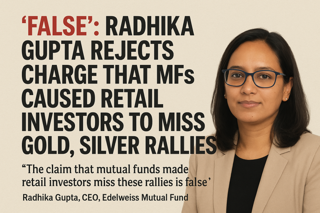 Edelweiss Mutual Fund CEO Radhika Gupta has firmly rejected allegations from several finfluencers that mutual funds kept retail investors from profiting during recent surges in gold, silver, and AI-related stocks. Calling the accusations “false” and “misleading”, she clarified that mutual funds continue to offer transparent and diversified investment avenues aligned with long-term goals — not short-term speculation.